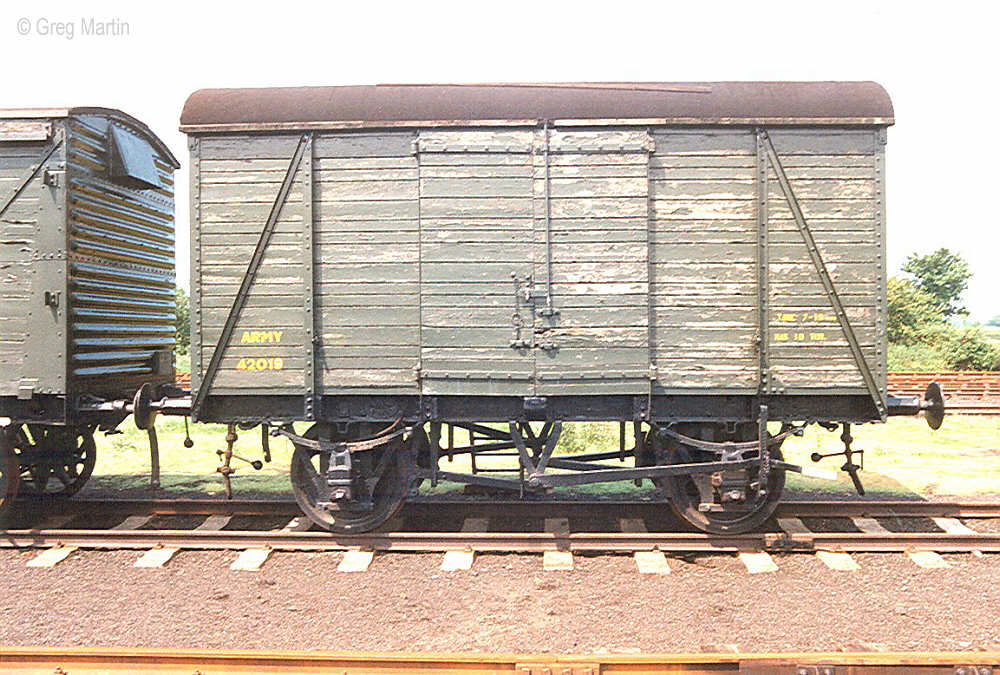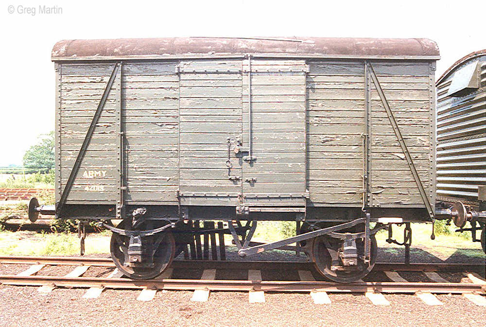 Einer Information von Greg Martion zufolge hatte die britische Armee in Deutschland zwei Wartungszüge im Einsatz. Der südliche Zug war in Krefeld und später in Mönchengladbach beheimatet, während die nördlichen Depots von Wulfen bis Fallingbostel verteilt waren und vom "Nord-Zug" nach Bedarf angefahren wurden. Das Nordteam soll im Zug gewohnt haben! Zum Ende der Einsatzzeit stand der Zug in Bielefeld und wurde nach seiner Abstellung 1990 nach Wulfen gebracht. (Wagenliste Nord-Zug) Von diesen mobilen Werkstattzügen ist mir auch ein Bild bekannt, das einen Wagen mit UIC-Nummer zeigt. Zu lesen ist da 50 80 09-29 018-2. Bei DSO gab es Anfang 2007 eine Diskussion, nach der einer dieser kurzen britischen Zweiachser auch von der DB als Bahndienstwagen übernommen wurde. Hat dieser dann auch eine DB-Bdw-Nummer erhalten und hätte jemand den ultimativen Bildbeweis dafür? |