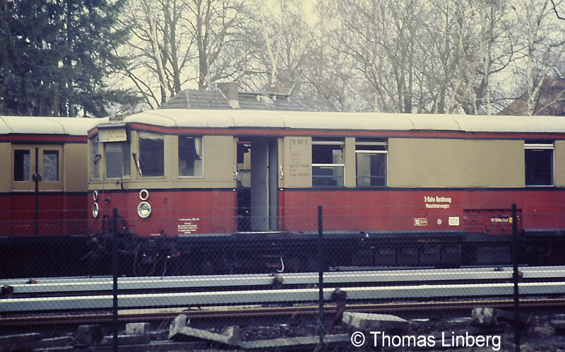 278 111-0 S-Bahn-Gepäckzug ex 275 817-5 ex ET 165 574 ex elT 3336 ex Tw 2414 Herst. WUMAG, Görlitz 1927/1928 (unterschiedliche Angaben) Verbleib: 1992 Uz in 478 010-2 / Ausgemustert 13.02.1995 Berlin-Wannsee, Datum unbekannt |