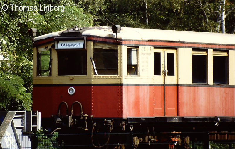 ![]() 275 625-2 Schlepptriebwagen (Erprobung der Baureihe 480) ex ET 165 040 ex elT 3110 ex Tw 2187 Herst. WUMAG, Görlitz 1927 (Prototyp) Verbleib: 1992 Uz in 475 161-6 / Ausgemustert 12.09.1994 Berlin-Wannsee, 14.07.1990 |