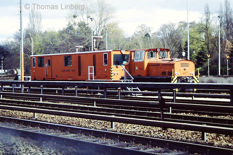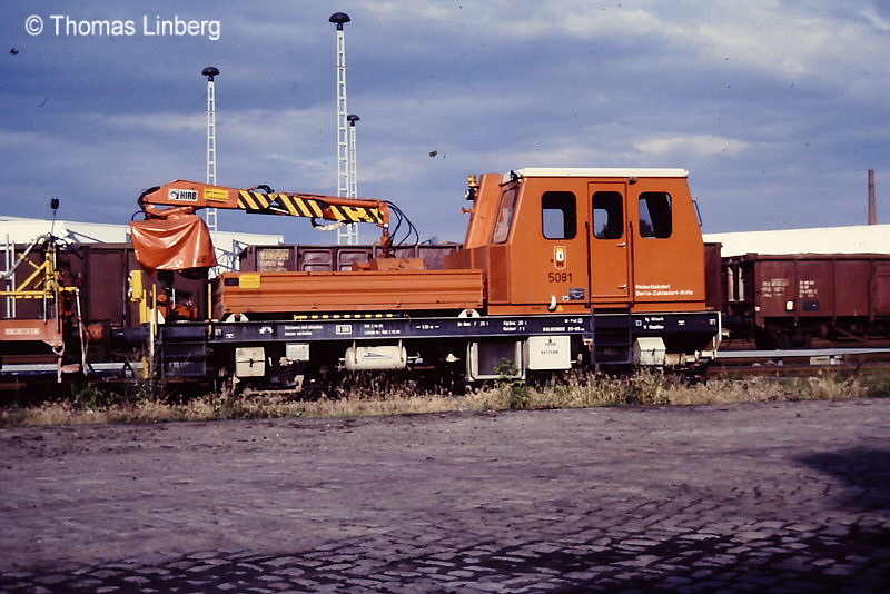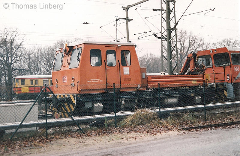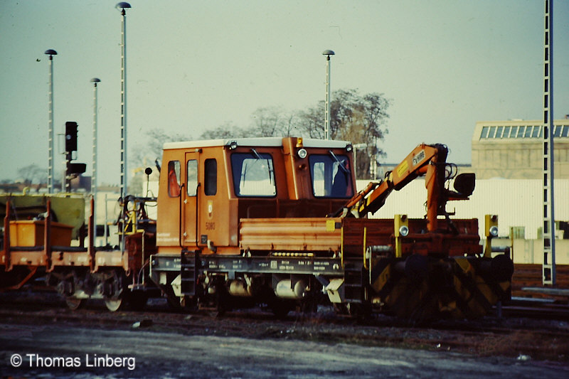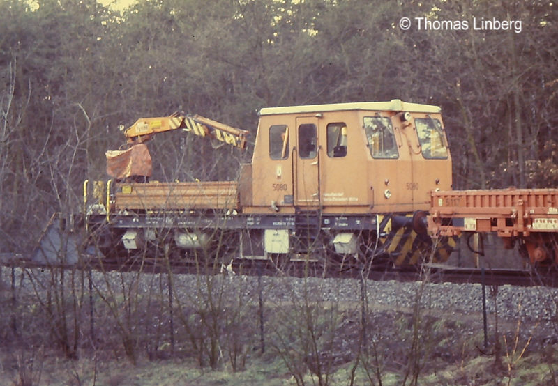 BVG 5080 Oberbauwagen OBW 10 Herst. Dt. Plasser 1985/494 Verbleib: 97 17 60 501 14-0 Fa. Spitzke Berlin-Wannsee, 30.12.1990 |