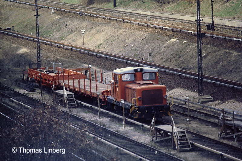![]() BVG 5051 Herst. Gmeinder 1989/5674 (Typ E/DE) Verbleib: 1994 Uz in 478 602-6 / 2009 an hvle, Berlin-Spandau Berlin-Wannsee, 29.07.1989 |