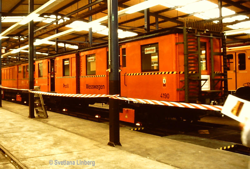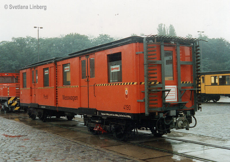 4190 Profilmesswagen (Typ SM48) ex BVG 830 (Typ A 2 Bw) Herst. BVG 1949 Berlin-Olympiastadion, 04.05.1989 |