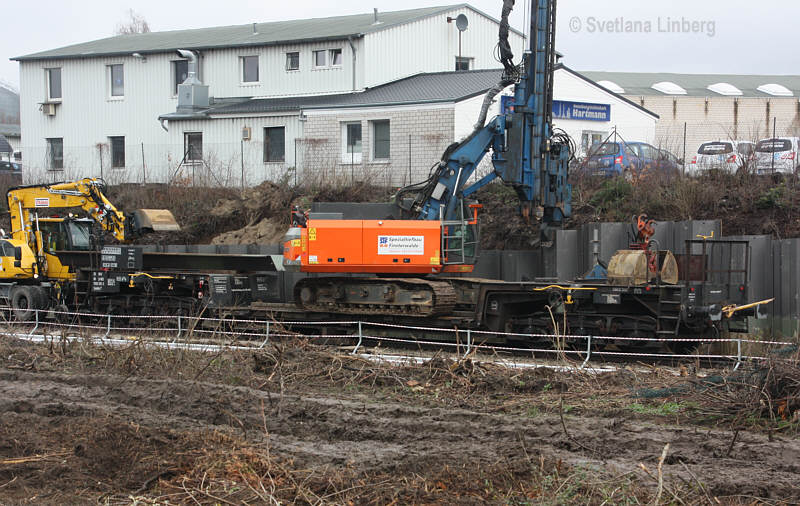 35 80 9936 212-3 D-NCS Uaaikks 764 ex 31 50 993 5212-4 (Dok.Nr. 6065) Herst. Waggon Union, Siegen 1986 Berlin-Mariendorf, 04.03.2020 (Arbeiten für den Aufbau der Dresdener Bahn) Beachtenswert ist die Balkenkonstruktion unterhalb der Ramme! |