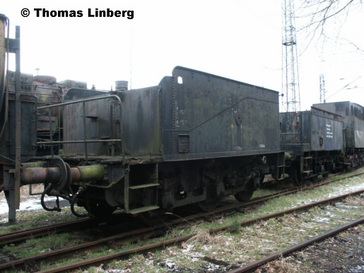 "Ich kann Ihnen einige Angaben zu den beiden Eisenacher-Wasserwagen später eingesetzt als Ölwagen geben , welche heute im ehem. Bw Falkenberg stehen ! Der Wagen mit der Nr. !!! 60 50 979 4629-3 ( verkehrt nur zw. Bw Eis. und Bf. Marksuhl ) stand von 1986 bis 1993 als Bhfs.Wagen in der Tfz-Einsatzstelle Mühlhausen in Thüringen und diente dort als stationäres Öllager.Er verkehrte noch bis 1986 zusammen mit dem zweiten 3 achsigem Tender auf Ihrem Bild ( Bhfs Wagen Tfz Est Gotha/ ex Bw Gotha ) zwischen den Tfz Einsatzstellen Mühlhausen und Gotha zur Motorenöllieferung,wurde aber auf Grund von Fahrwerksschäden ab April 1986 nur noch als örtlicher Bahnhofswagen in Mühlhausen vorgehalten. Er stand in dieser Zeit stets hinter der Drehscheibe zwischen den Lokschuppengleisen 2 und 3 auf einem kurzen Stummelgleis unmittelbar vor dem Eingang der Lokleitung.Die Wagen wurden 1 bis 2 mal im Jahr wechselweise nur bei Überführungen von Triebfahrzeugen als Lz-Fahrt mitgeführt,das ging zur damaligen Zeit noch dass eine Lz einen Wagen mitführen durfte , auch ohne selbsttätige Bremsanlage ! Ab April 86 wurden die Fahrten nur noch mit dem Tender der Est Gotha durchgeführt. In Mühlhausen wurde das Öl dann in den anderen Tender ( Bahnhofswagen ) gepumpt. Das dauerte mitunter bis zu 2 Tage ! Anschl. wurde der Tender mit der nächsten anstehenden Lz Fahrt wieder nach Gotha überführt ! Ab ca. 1990 wurde auch dieser Tender aus dem Verkehr gezogen und es kamen 2 achsige Kesselwagen zur Öllieferung nach Mühlhausen ! Mit Aufgabe der Werkstatt in der Tfz Est Mühlhausen wurde der Ölwagen überflüssig , stand noch ca. ein halbes Jahr hinter dem ehem. Kohlenbansen abgestellt bis schliesslich ein Hilfszugeisatz in der Tfz Est . ( eine BR 112 musste mit Schäden am Fahrwerk über Hilfsgestelle abgeschleppt werden ) den Abtransport des Tenders mit weiteren 2 Bahnhofswagen mit 20 Km/h zur Folge hatte ! Der Tender wurde in Gotha mit dem dortigem Tender gekuppelt und nach Eisenach geschleppt von wo aus im Frühjahr 1994 ein kompletter Zug u.a. mit dem ehem. amerikanischen Tender ( Feuerlöschwagen ,Bww Eisenach/ Reinigungsmittellager Nr. 80 50 979 4601-8 ) sowie dem Ölwagen des Bw Eisenach ( Nr. 30 50 949 4621-0 )( beide auf Ihren Bildern ) und 2 weiteren Tendern zunächst nach Basdorf bei Berlin in die Loksammlung von Bernd Falz startete.Diese wurde ja bekanntlich später nach Jüterbog und letztlich nach Falkenberg/ Elster überführt ! Ich selbst war 10 Jahre als Lokführer in der Est Mühlhausen tätig und schenkte schon damals genau diesem als Ölwagen abgestelltem Tender besondere Aufmerksamkeit ! Leider existiert aus dieser Zeit nur ein eher schlechtes s/w Foto des Tenders was aber 1992 sogar im EK abgelichtet war und durch einen guten Bekannten angefertigt wurde !