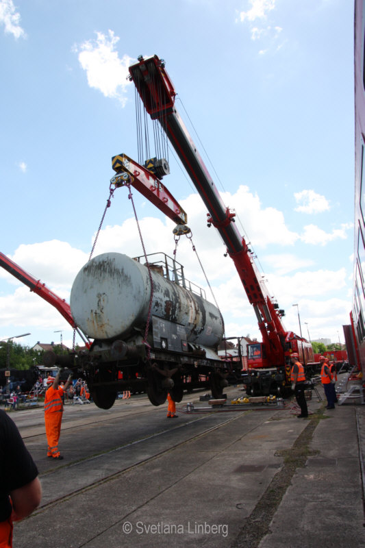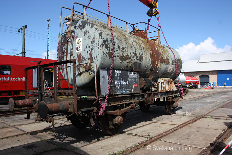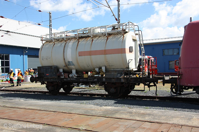 Auch ihn gibt es noch: 40 80 945 6 210-0 Bdw 800 Übungskesselwagen 6 REV FD X 10.12.91 / Verl. b. 12.98 ex 40 80 943 3 218-x Herst. Kessel Hilgers AG 1942 |