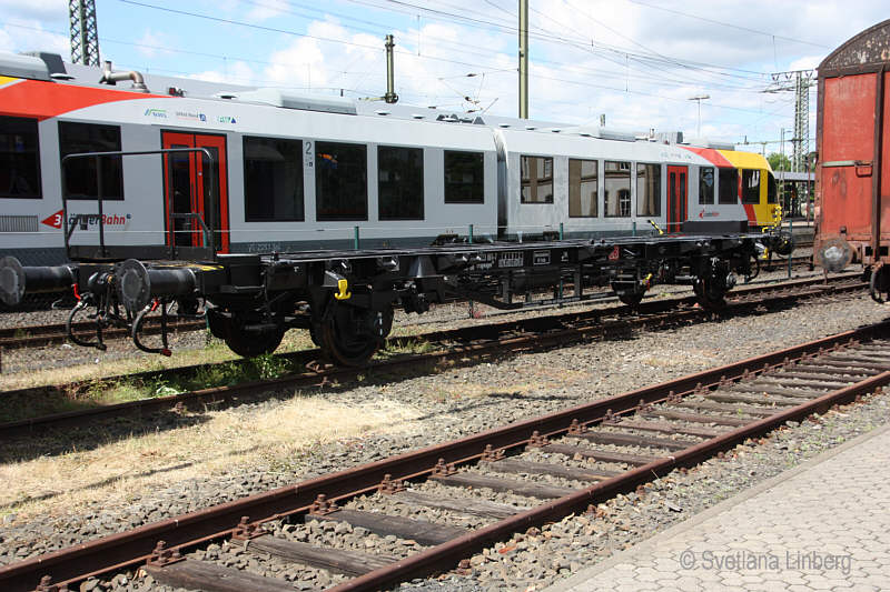 40 80 9423 061-7 Tragwagen 384 Der in einem Container untergebrachte Simulator befindet sich zurzeit bei Krauss Maffei und wird dort den neuen Rettungszügen angepasst, u.a. soll ein Original-Führerstand 714.1 eingebaut und weitere "Übungsstrecken" installiert werden. |